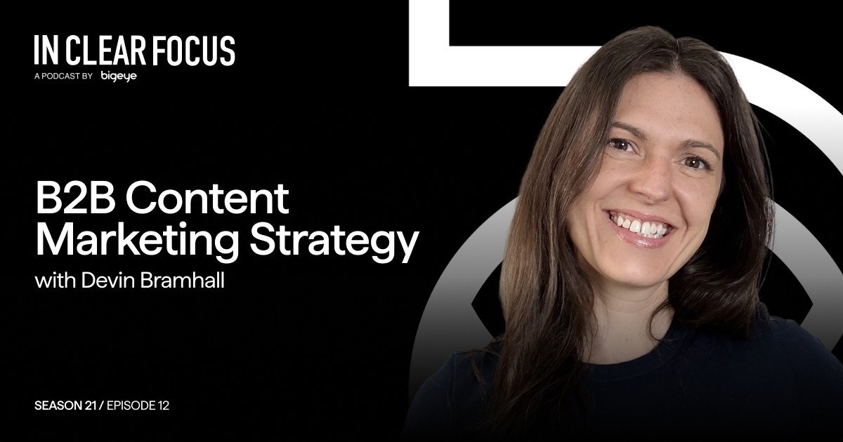Adrian Tennant: Thanks again to my guest this week, Devin Bramhall, the author of “B2B Content Marketing Strategy.” As always, you'll find a complete transcript of our conversation with timestamps and links to the resources we discussed on the IN CLEAR FOCUS page at Bigeyeagency.com. Just select ‘Insights’ from the menu. Thank you for listening to IN CLEAR FOCUS, produced by Bigeye. I've been your host, Adrian Tennant. Until next week, goodbye.