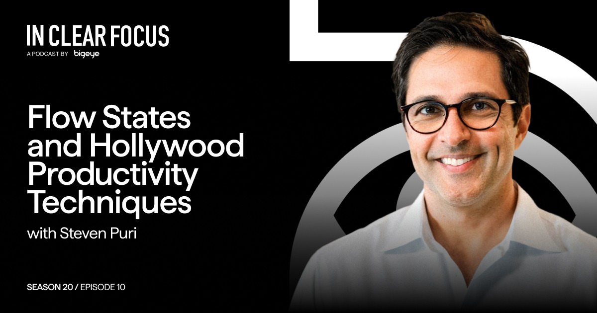Adrian Tennant: You're listening to IN CLEAR FOCUS, fresh perspectives on marketing and advertising produced weekly by Bigeye, a strategy-led full-service creative agency growing brands for clients globally. Hello, I'm your host, Adrian Tennant, Bigeye’s Chief Strategy Officer. Thank you for joining us. The shift to hybrid and fully remote work has fundamentally changed how creative teams operate. While many organizations have adapted to distributed work, the challenges of maintaining productivity, fostering collaboration, and keeping teams engaged remain significant hurdles for leaders across the marketing and advertising industry. From managing creative flow states to preventing burnout, the demands of leading remote creative teams require a completely different playbook than traditional office-based management. Our guest today brings a unique perspective to these challenges, drawing insights from two decades in Hollywood, followed by years building technology companies. Steven Puri is the founder and CEO of The Sukha Company, a productivity platform designed to help remote workers achieve focused, healthier work experiences. Steven's career spans roles as Vice President of Production at 20th Century Fox, Executive Vice President at DreamWorks Pictures for Kurtzman-Orci, and Digital Effects Producer on Academy Award-winning films like Independence Day. Now, as a tech entrepreneur, Steven applies lessons learned from managing creative teams on multi-million dollar film productions to help remote workers and their leaders thrive in distributed environments. To discuss the unexpected lessons from Hollywood about remote work, the science of flow states, and practical techniques for leading creative teams, I'm delighted that Steven is joining us today from Austin, Texas. Steven, welcome to IN CLEAR FOCUS.