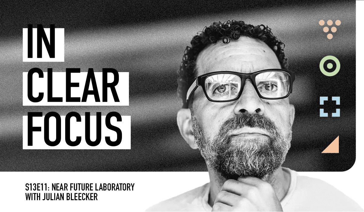 IN CLEAR FOCUS: In the second of two conversations, Julian Bleecker discusses how the Near Future Laboratory helps organizations envision future scenarios using Design Fiction. Julian explains why imagination is essential for solving existential challenges and how it will help us shape the future. We also discuss Solarpunk, regenerative design, the future of work, and how Design Fiction can be applied to enrich marketing and advertising with immersive research and creative storytelling methods.