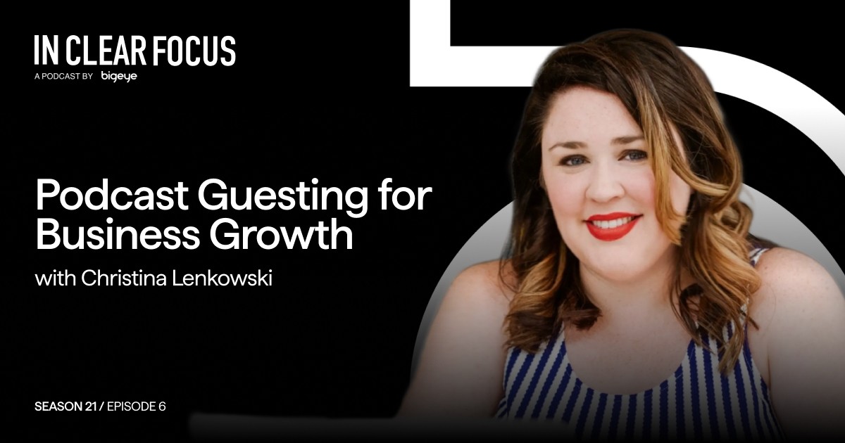 Adrian Tennant: You're listening to IN CLEAR FOCUS, fresh perspectives on marketing and advertising produced weekly by Bigeye, a strategy-led full-service creative agency growing brands for clients globally. Hello, I'm your host, Adrian Tennant, Bigeye's Chief Strategy Officer. Thank you for joining us. According to Edison Research's 2025 Infinite Dial Report, 73% of Americans aged 12 and older have consumed a podcast in either audio or video format. That's approximately 210 million people. Fifty-five percent are now monthly podcast consumers, representing an all-time high. But here's what matters for marketers: Podcast audiences are deeply engaged, with 80% listening to all or most of each episode. Yet, while many businesses focus their efforts on creating their own podcasts, far fewer recognize the opportunity that exists in being a guest on other people's shows. Our guest today is an expert in helping entrepreneurs, authors, and thought leaders leverage this opportunity. Kristina Lenkowski is a publicity strategist and the founder of Publicity by Kristina, where she helps clients go from best-kept secret to go-to expert through strategic podcast guest appearances. With over 15 years of experience in public relations and marketing, Kristina and her team have secured more than 1,000 podcast recordings for clients on top-rated shows. She's also the host of Your Podcast Publicist and a sought-after speaker on the power of earned media. To discuss how podcast guesting can drive business growth, I'm delighted that Christina is joining us today from Boise, Idaho. Christina, welcome to IN CLEAR FOCUS!