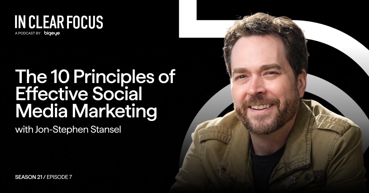 Adrian Tennant: Coming up in this episode of IN CLEAR FOCUS Jon-Stephen Stansel: AI can do a lot, but it doesn't have taste. It can create content, but it can't tell you if that content is good or not. And that's a uniquely human thing. Adrian Tennant: You're listening to IN CLEAR FOCUS, fresh perspectives on marketing and advertising, produced weekly by Bigeye, a strategy-led, full-service creative agency growing brands for clients globally. Hello, I'm your host, Adrian Tennant, Bigeye's Chief Strategy Officer. Thank you for joining us. Social media platforms come and go. Features change overnight. Algorithms shift without warning. Yet some brands consistently create content that resonates, builds community, and drives results, regardless of which platform dominates the cultural conversation. What separates these successful brands from those struggling to keep up? Well, the answer isn't about chasing the latest trend or cracking the algorithm. It's about mastering timeless principles that work on any platform, in any trend cycle. Our guest today has spent 15 years mastering these principles. Jon-Stephen Stansel is the founder of Saturn 9 Media, a social media management and strategy consultancy based in Bentonville, Arkansas. Throughout his career, Jon-Stephen has managed social media for major entertainment franchises, including Amazon Prime's “Invincible,” “The Lord of the Rings: The Rings of Power,” and “Avatar: The Way of Water,” as well as for higher education institutions and government. He's presented at conferences and has appeared on numerous business podcasts advocating for social media professionals. Jon-Stephen's new book, published by Kogan Page, is “The Ten Principles of Effective Social Media Marketing: Strategies to Guarantee Impact.” Drawing on his extensive experience, the book provides practical guidance for creating posts that connect with audiences every time, packed with real-world examples from brands like HBO, Xbox, and Beyond Meat. To discuss why social media requires dedicated teams and budgets, how to develop a consistent brand voice that resonates, and the role of human judgment in an AI-enabled world, I'm delighted that Jon-Stephen is joining us today from Bentonville, Arkansas. Jon-Stephen, welcome to IN CLEAR FOCUS. Jon-Stephen Stansel: Hi, I'm excited to be here today. Adrian Tennant: Well, Jon-Stephen, I mentioned it briefly in the intro, but could you start by telling us about the kind of work you do at Saturn 9 Media? Jon-Stephen Stansel: Yeah, so I'm the founder of Saturn 9 Media. We're a small agency that does social media marketing for clients all over, mostly in the entertainment industry these days, though. We work on accounts for large franchises, television shows like Amazon Prime's Invincible, Hasbun Hotel, and several others. Adrian Tennant: Perfect. So what prompted you to write “The 10 Principles of Effective Social Media Marketing”? Jon-Stephen Stansel: Well, I've been doing social media marketing for close to 15 years now, and I've always wanted to write a book. My background is in academia, so that was always kind of a goal in life. The problem, though, with social media is that it changes so frequently that, you know, most books written on the subject are destined to be outdated by the time they go to publishing. So, uh, I thought about the course of my career, 15 years working, and what principles stood out to me as fundamental and evergreen. Facebook could go belly up tomorrow, which it won't, but you know, if it were to happen, these principles would still apply to any other social network, regardless of whether you're doing video or text-based, or image-based social, just no matter what you do, these ones should stay true for the foreseeable future. Adrian Tennant: Well, you begin the book by challenging a common misconception that social media can be managed effectively by a single person. How is this belief harmful to brands? Jon-Stephen Stansel: Oh, I think so often we think of the lone social media manager, just one person running all of the things and those days are gone, especially for larger brands. Maybe it can be done for smaller local businesses, but once you hit a certain point, it requires a team of people working on it. Social media is 24-7. People need to sleep, right? There were days when I was a solo social media manager, and I would wake up and check my phone at 1 a.m. to see if there was anything that needed attention, but that's a one-way ticket to burnout town. You need a team of people that can help manage things, create content for things. No one person can be an expert at Facebook, Twitter, or X now, Instagram, TikTok, and all of the things that go into making the content for that. Like one person can't be a videographer, photographer, graphic designer, all of those things. And if you find one person that can do it, like you need to pay them very well for that, that those multitude of talents. So we really do need teams of people to start building content, managing social media. And most importantly, you can't have diversity on a team of one. We try to reach out to many different audiences and you need different perspectives and viewpoints on your team. And not only that, you need that insurance policy of someone else to look at a piece of content and go, are you sure we want to post that? That can keep your company out of a lot of hot water for sure. So you really need a group of people working on your social rather than leaving it up to one person. Adrian Tennant: So let's talk about building teams. Jon-Stephen, what does an effective social media team structure actually look like? Jon-Stephen Stansel: I interviewed several different social media managers about what their teams were, from different brands, large and small, different industries, from education to retail, to see what their teams looked like. And the answer is there's no one perfect model for a social media team. It's going t