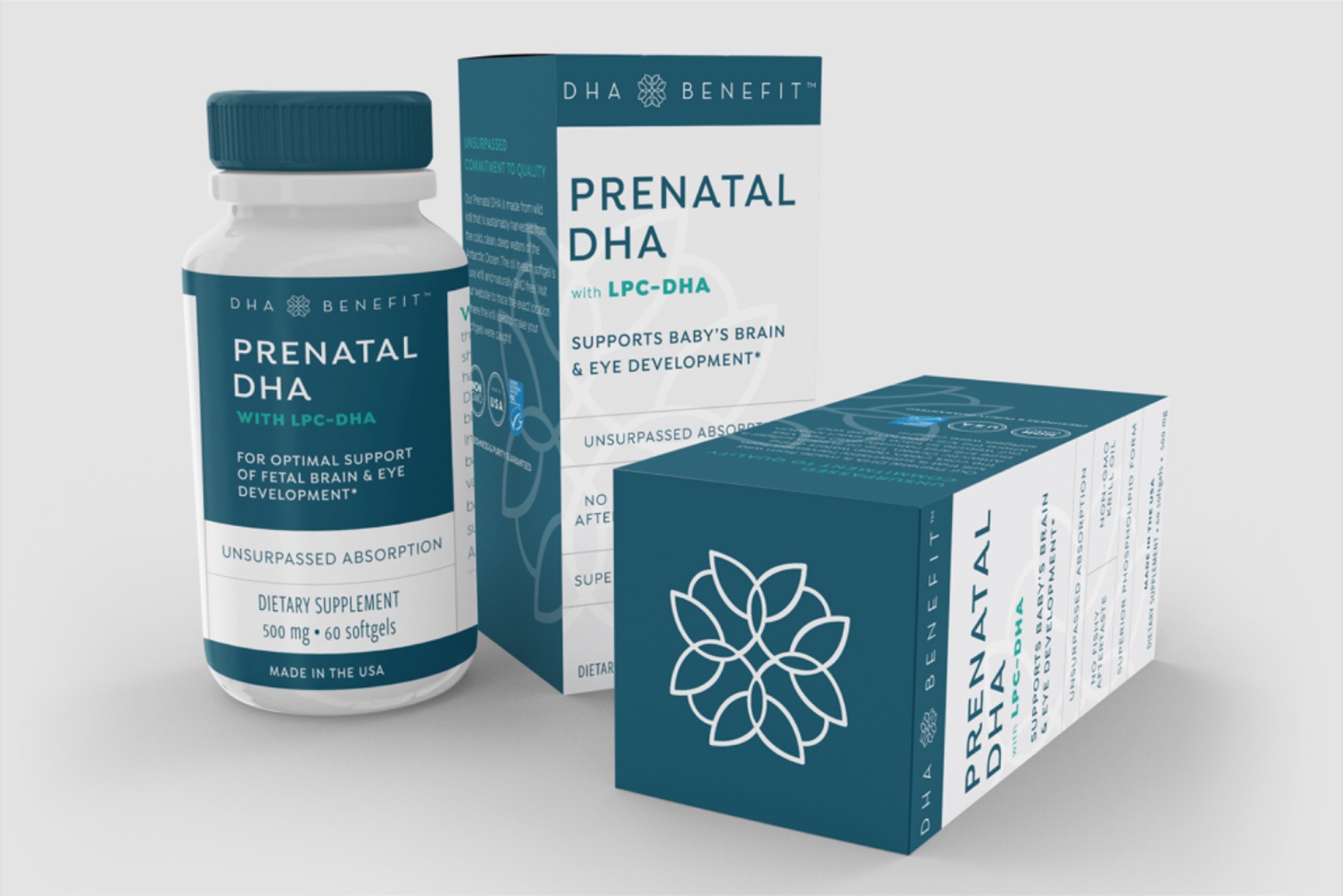 Visual identity and packaging design evoked scientific clarity and emotional reassurance, positioning DHA Benefit’s blood-brain barrier benefits as both advanced and accessible to expectant mothers.
