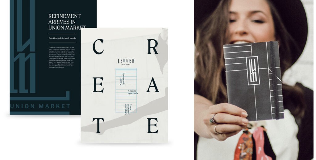 Visual identity merged heritage-inspired elements with modern aesthetics, reflecting the historic market ledgers that inspired the name while appealing to design-minded urban professionals.
