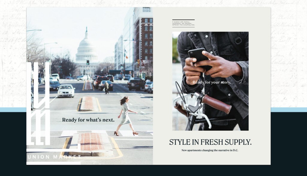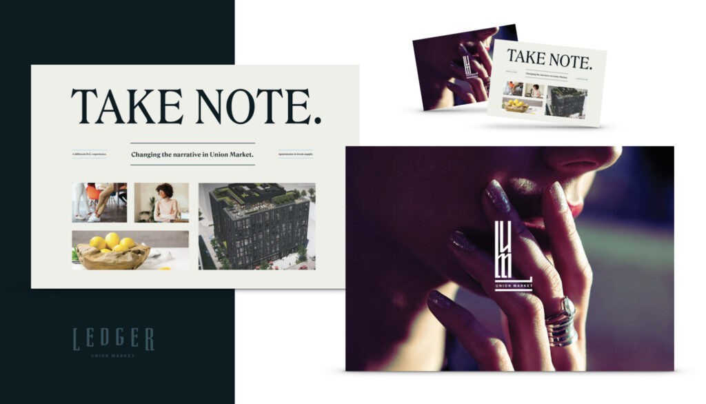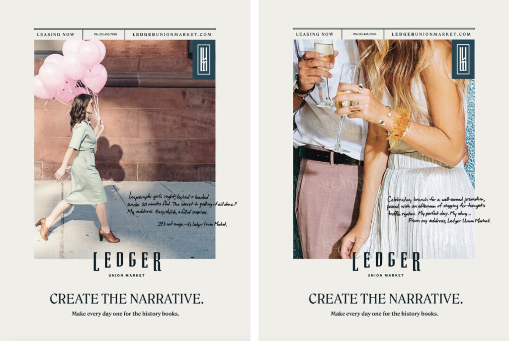 Ledger Union Market, a new midrise community in Washington D.C.’s vibrant Union Market District, faced the challenge of standing out in a hypercompetitive multifamily housing market. Named after the hand-written ledgers of historic market vendors, the brand needed to fuse neighborhood heritage with bold modern architecture. Through comprehensive discovery and consumer research, Bigeye identified design-minded urbanites seeking authenticity over excess. We developed a full-funnel brand strategy encompassing visual identity, lifestyle-focused digital presence, targeted media campaigns, and onsite experiences. The result was a 3x increase in lead volume within 60 days, 8.4% CTR on paid social campaigns, 24% conversion rate from landing page to tours, and 36% reduction in cost per lease versus comparable properties.