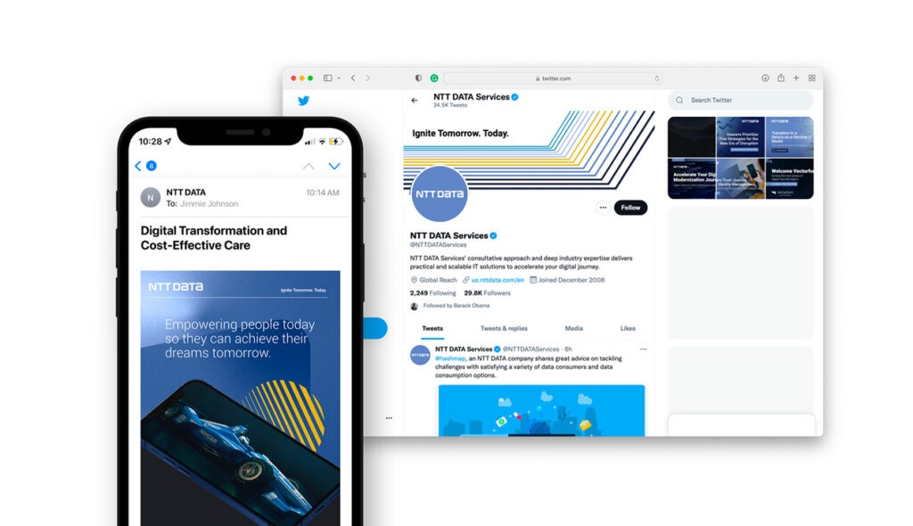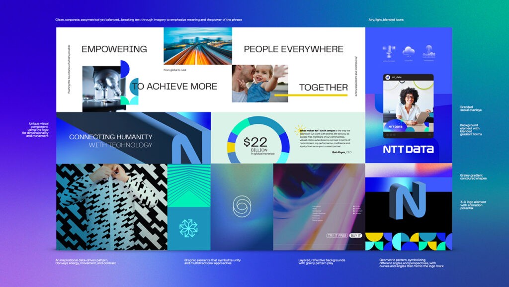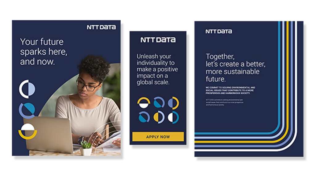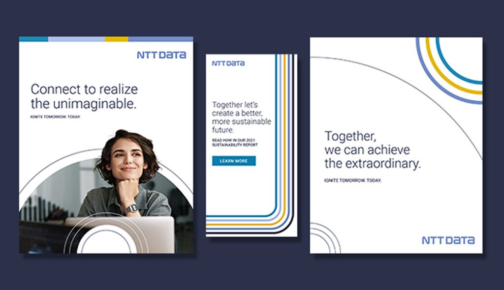 NTT Data serves 75% of Fortune Global 100 companies across 50+ countries with 200,000 professionals worldwide. As the #2 worldwide provider of Managed Security Services and 6th most valuable IT services brand globally, they needed fresh creative work that would resonate with elite enterprise clients while building broader brand awareness. Bigeye developed the comprehensive “Ignite” global brand campaign created specifically for deployment during The Open Championship golf tournament. Our creative approach featured distinctive design elements including the “Sunrise” arch symbolizing joy and diversity, “Sphere” elements representing global connectivity, and “Angled lines” reflecting world-changing speed and upward movement. The clean, cohesive visual system maintained sophisticated minimalism while remaining personable and engaging, designed to prove expert status, improve brand perception, build trust, and attract new clients across global markets.